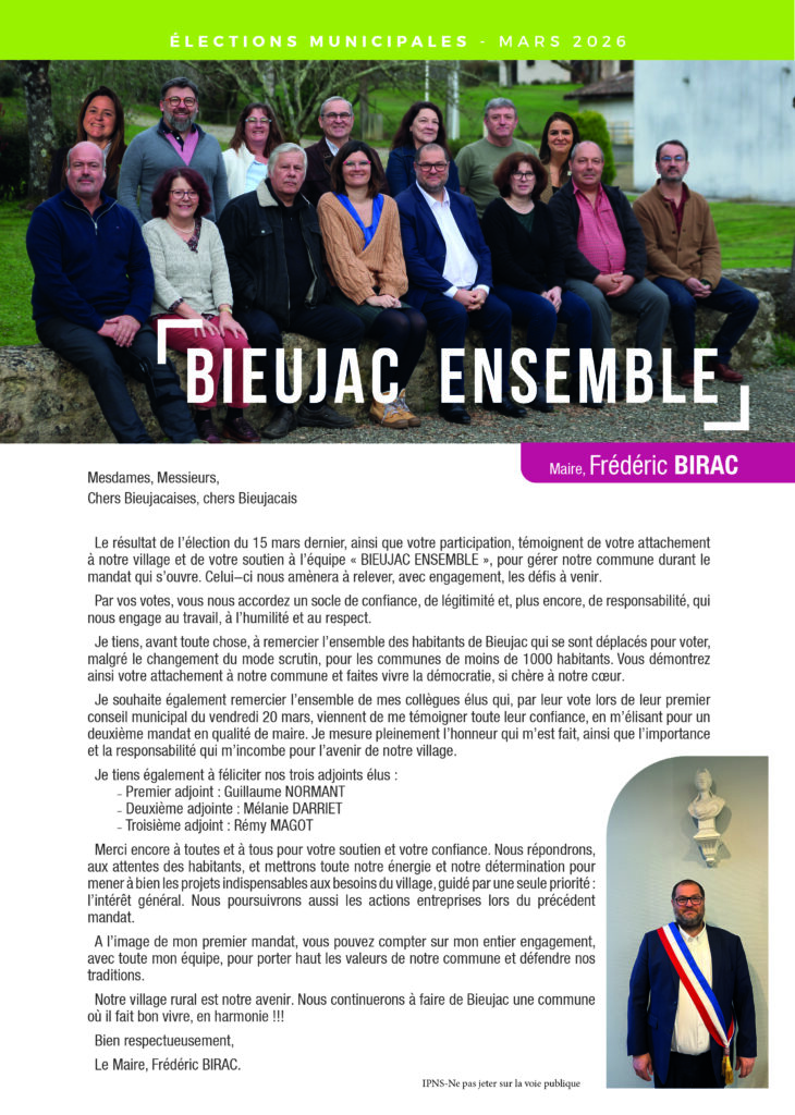 24 mars 2026 In accueil, Actu'Bieujacaise, Citoyenneté0 Comments Lettre de REMERCIEMENTS aux Bieujacaises, Bieujacais