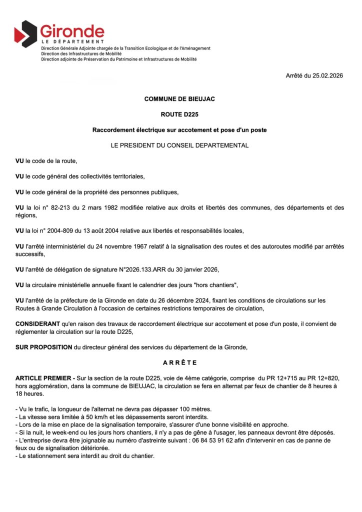 Applicables du 16 mars 2026 au 17 avril 2026 (durée effective des travaux 24 jours).